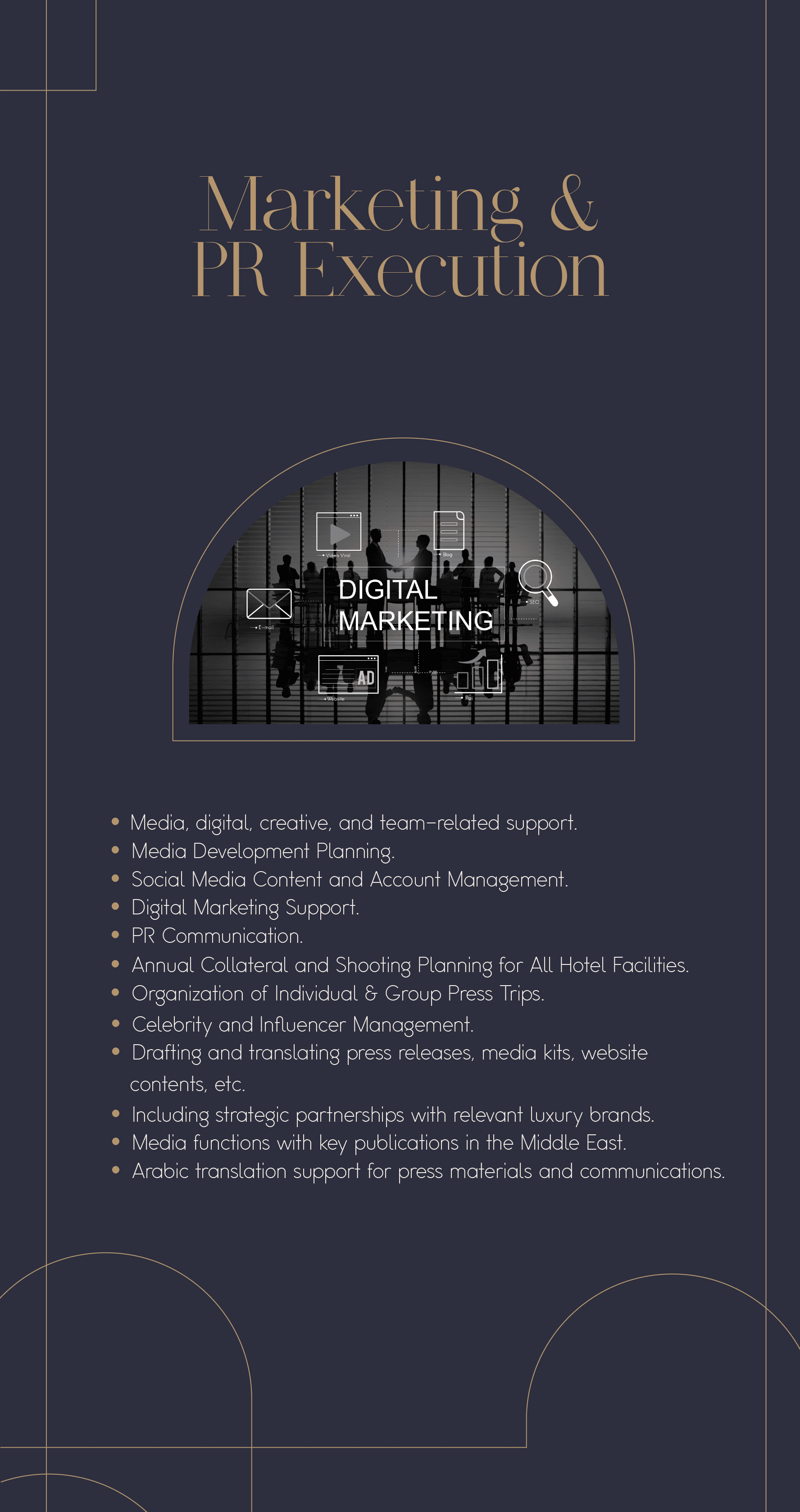 Hotelist Middle East is a boutique, performance-focused hospitality management and sales representation firm dedicated to delivering tailor-made, fully measurable solutions for luxury hotel and hospitality brands across the Middle East.